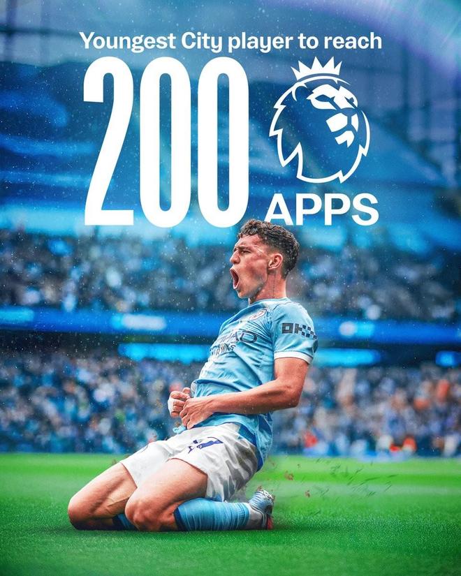 25岁158天,福登是达成英超200场里程碑最年轻的曼城球员